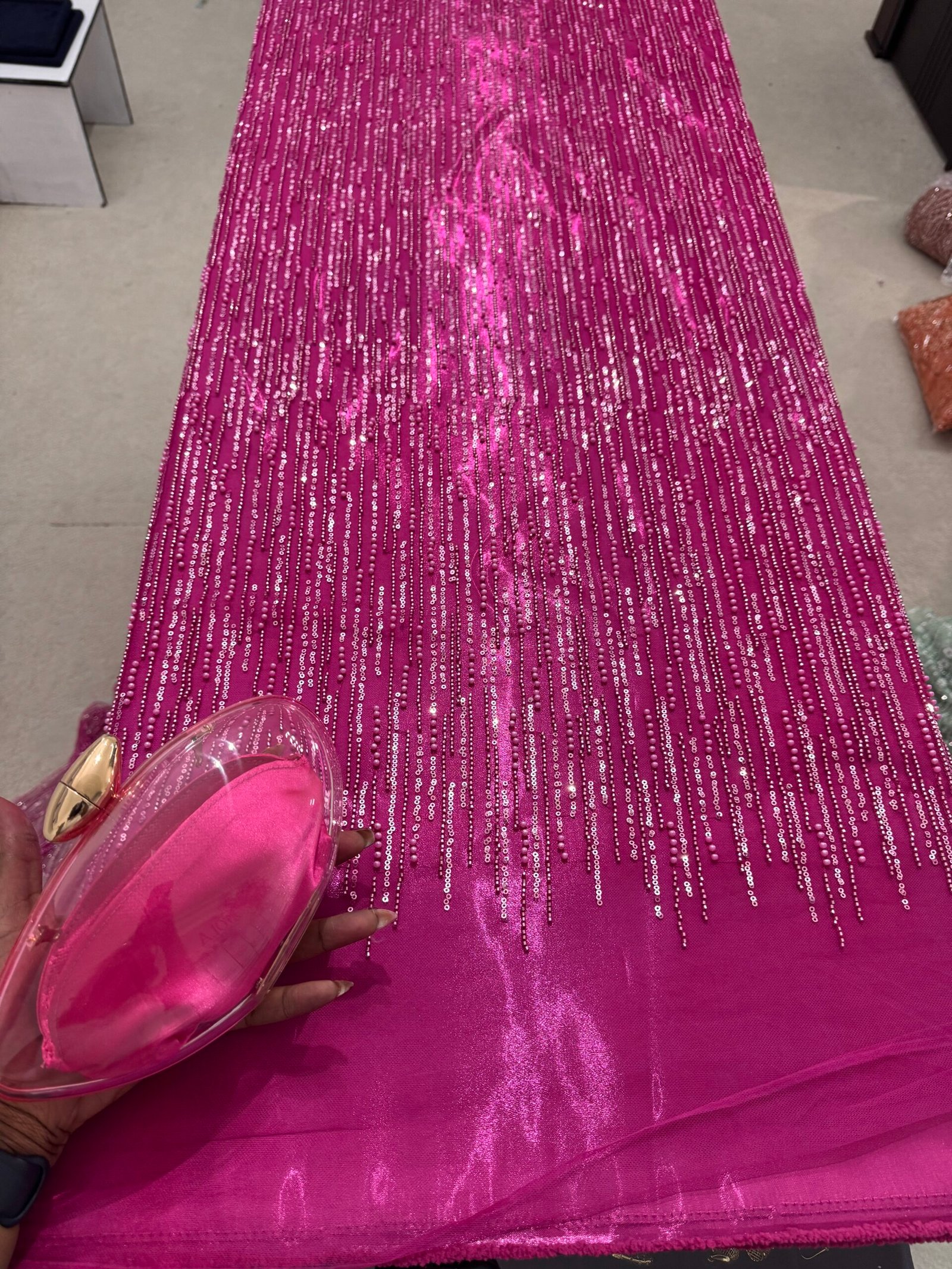 Chaque lace est soigneusement brodée de perles et de paillettes cousues à la main, offrant un éclat raffiné et une texture luxueuse sur une base de tulle doux et fluide.
