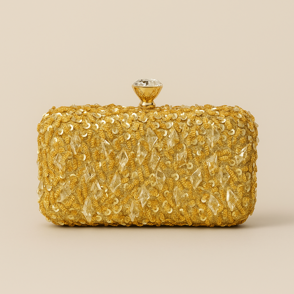 Son fermoir diamanté doré apporte une touche d’éclat supplémentaire, tandis que la finiton métallisée et la texture tridimensionnelle lui confèrent une allure moderne et luxueuse.