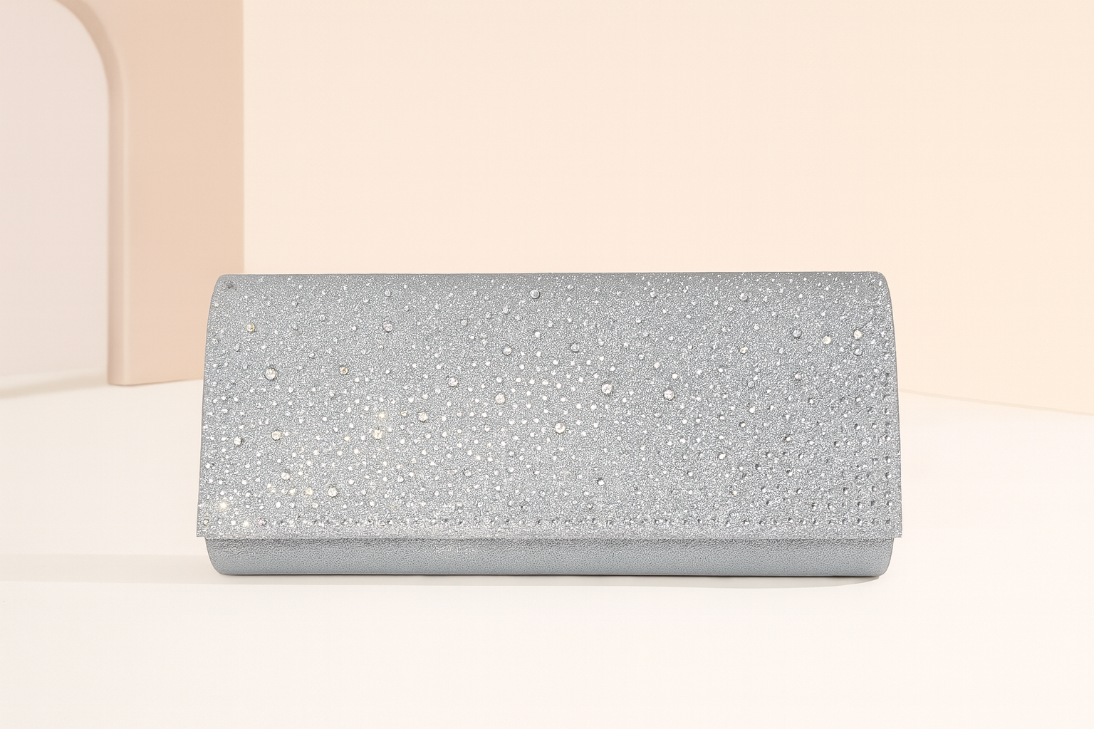Idéal pour accompagner une robe argentée, blanche, noire ou pastel, et des bijoux en cristal ou en or blanc.